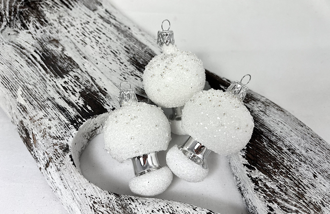 Hríbiky v bielo-striebornom prevedení s korálkami . Pozor : korálky môžu mierne opadávať.