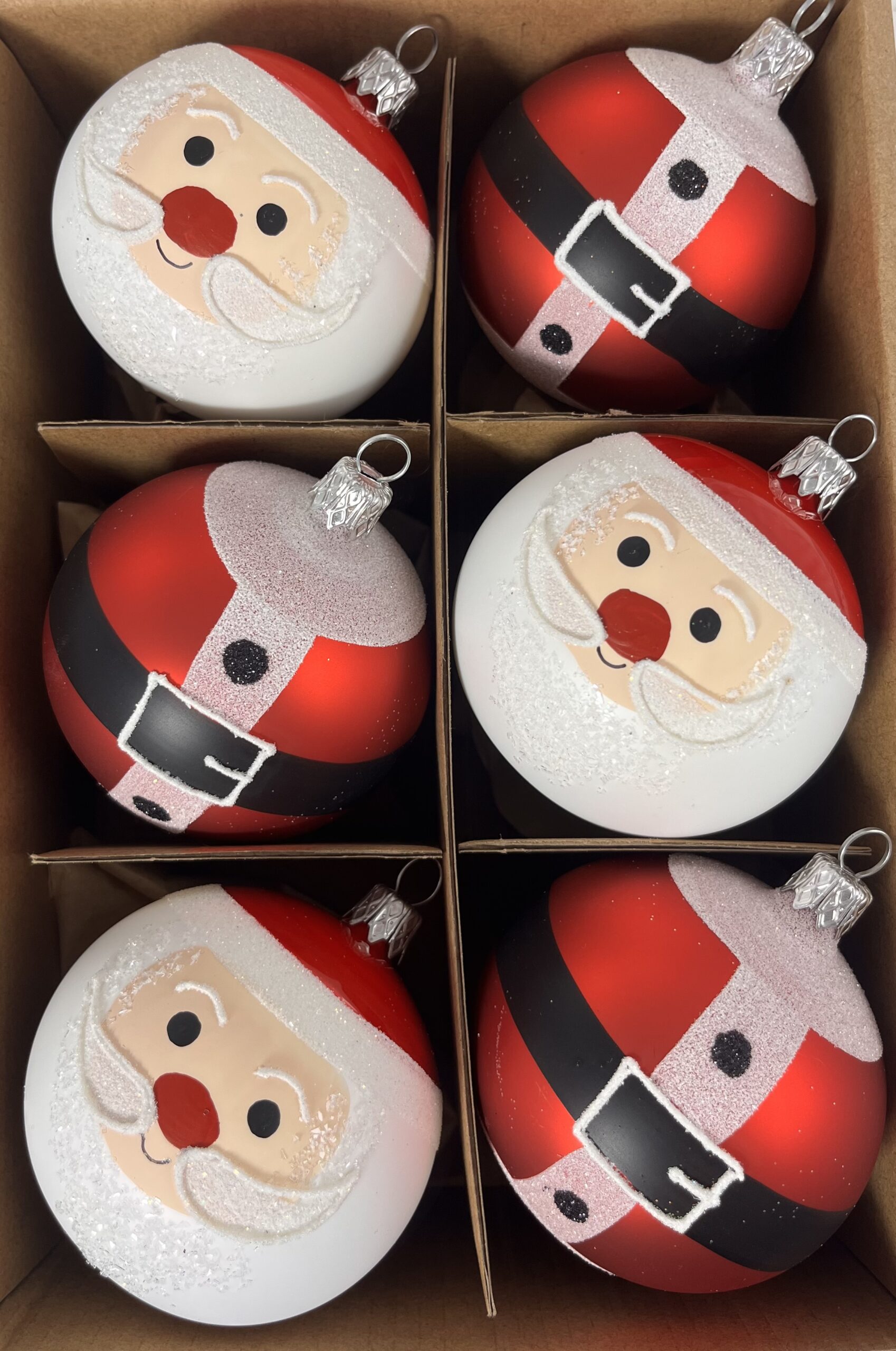Bring the jolly spirit of Father Christmas to your tree with this delightful set of six matte glass baubles. This coordinated collection features three charming Santa faces with sparkling, glitter-textured beards and three ornaments inspired by Santa’s iconic red suit, complete with a black belt and a shimmering silver buckle. The velvety matte finish and handcrafted glitter details add a premium feel to these whimsical designs. Perfect for creating a fun and festive theme that children and adults will love.