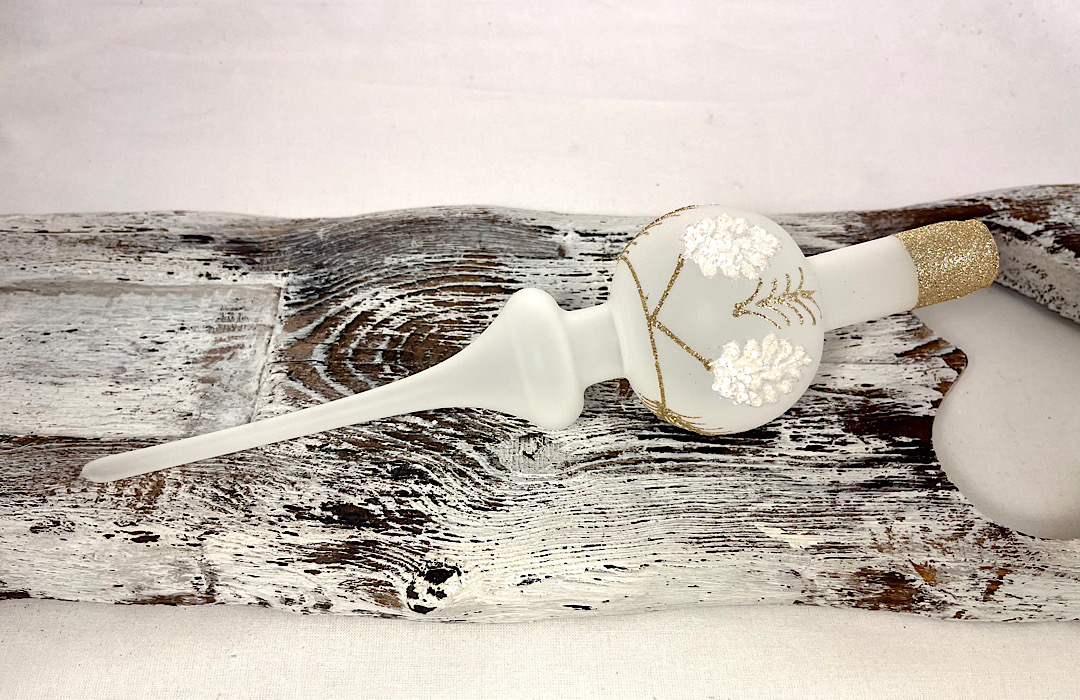 Complete your Christmas tree with the crowning piece of our collection. The popular design you know from set 80/1806/7/12 is now available as an elegant tree topper. This sophisticated glass piece features a pine cone motif paired with delicate golden twigs, creating a stunning focal point for your festive decor.